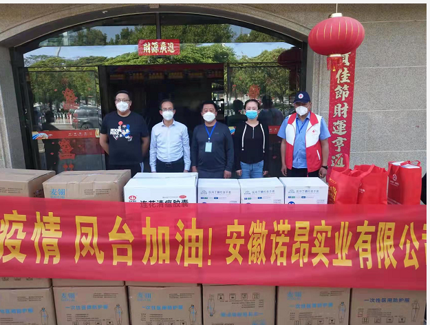 春末夏初之际,凤台县全体人民与新冠来了一场较量,但是病毒无情人有情,为支持凤台县新冠肺炎疫情防控,疫情初期,安徽诺昂实业有限公司迅速向关店乡向桥村捐献生活物资,为当地防疫工作献上绵薄之力,但随着形势严峻起来,4月10日上午,董事长亲自带队通过凤台县红十字会再次向关店乡捐赠防疫物资,为奋斗在一线的医护人员和隔离